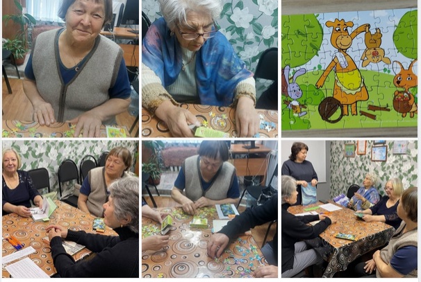 В ходе практической части участники занятия вспоминали сказки, которые им читали их родители, которые они читали своим детям и которые сейчас читают своим внукам. Задание вспомнить сказку по «взрослому» описанию удалось выполнить не сразу и не всем. Но зато сколько было при этом получено позитивных эмоций! Сколько было личных воспоминаний, связанных с детством и юношеством! На этой прекрасной ноте «позитивовцы» перешли к следующему заданию, где нужно было собрать пазл с картинкой из мультфильма. И снова буря по-детски искренних эмоций, задора и позитива!