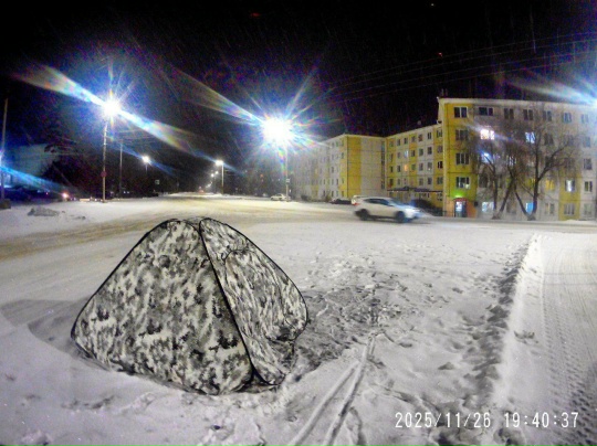 На календаре — 26 ноября, а в Тулуне путешественник установил палатку прямо на городской улице и собирается в ней ночевать...