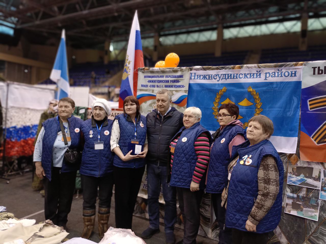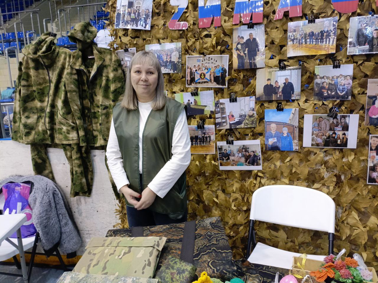 На стенде волонтёров города Тулуна – широкий ассортимент изделий. И летопись движения – четыре больших тома, в которых по годам и по дням рассказывается, чем живут волонтеры. «Здесь – каждый день жизни нашей группы. Мы понимаем, что идет исторический момент для нашей России, и мы участвуем в нем. Вот, смотрите, на этой фотографии – наша первая сеть, сейчас уже 1950-я, – рассказывает лидер группы Людмила Терешкова. – Всё отражено: как отправляли, как ребята приходили – наши воины».