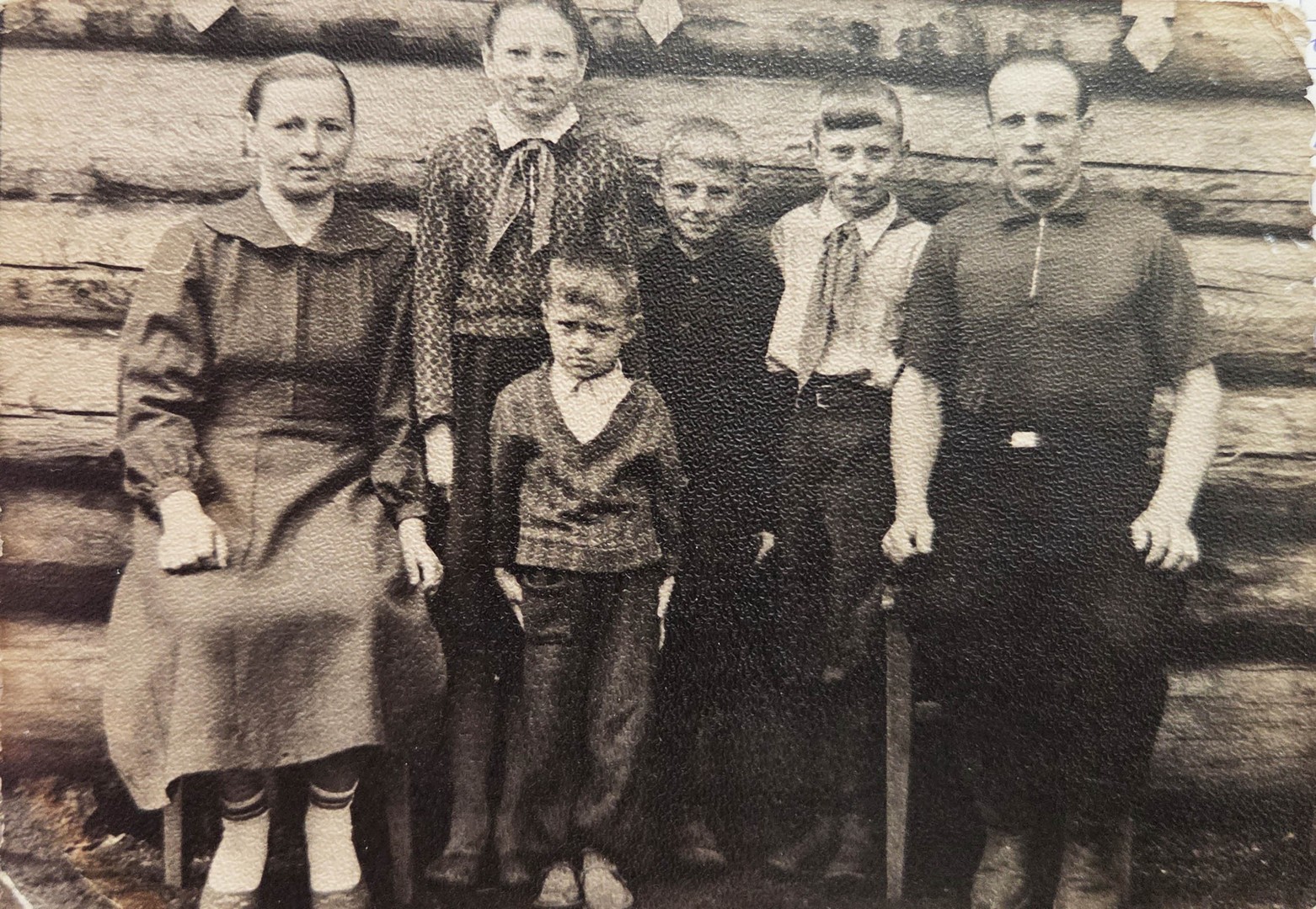 Этот снимок сделан в селе Икей Тулунского района Иркутской области в конце 1950-х — начале 1960-х годов. В кадре — супруги Лидия и Иван Матюхины и четверо их детей — Мария, Владимир, Петр и самый младший Сергей. В Икее семья прожила 30 лет, а когда все дети поселились в Иркутске, родители решили переехать поближе к ним