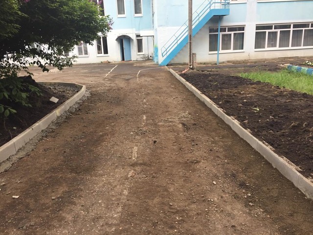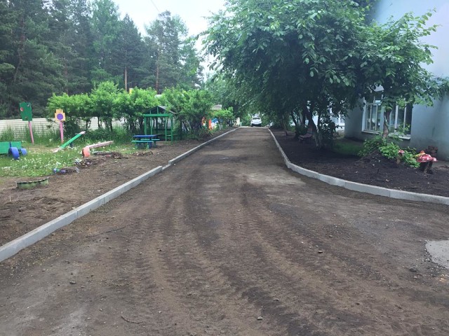 Идут работы по установке ограждения и асфальтирования территории детского сада
