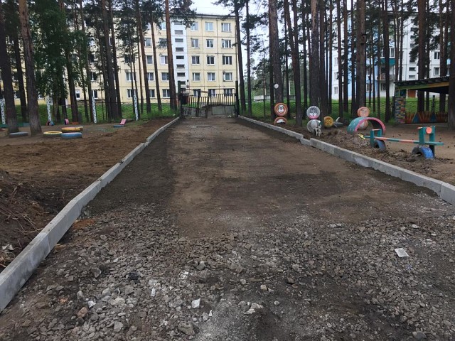 Новости Тулуна > Идут работы по установке ограждения и асфальтирования территории детского сада