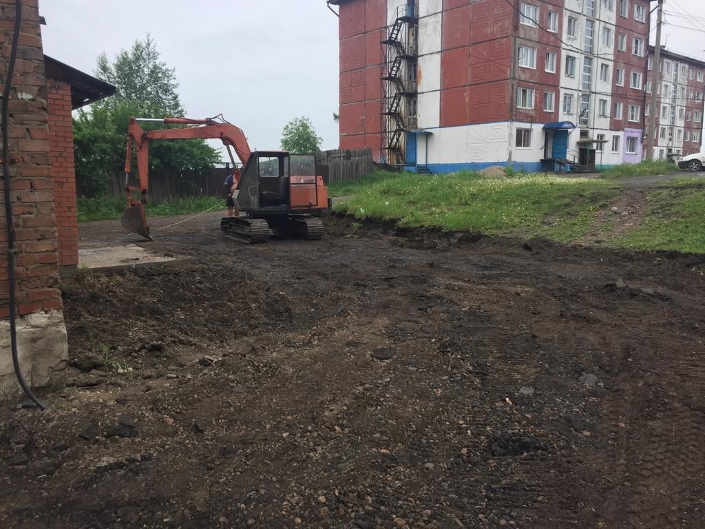 Новости Тулуна > Начались работы по благоустройству придомовых территорий в микрорайоне Угольщиков и пос. Стекольный.