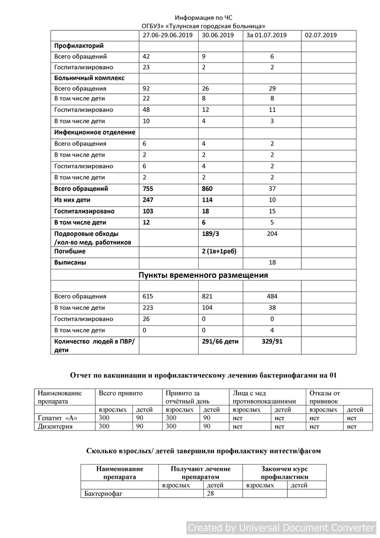 Информация по чрезвычайной от ОГБУЗ "Тулунская городская больница"