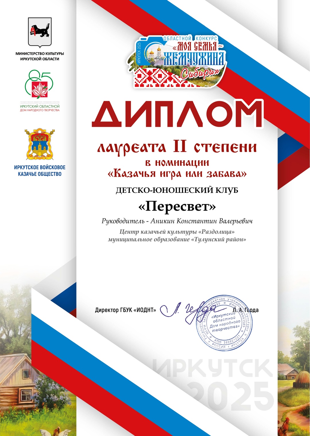 Учредитель конкурса – министерство культуры Иркутской области, организаторы – государственное бюджетное учреждение культуры «Иркутский областной Дом народного творчества» и Иркутское войсковое казачье общество.