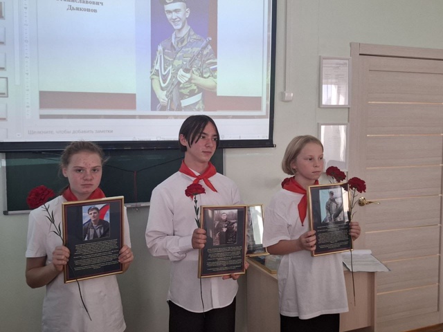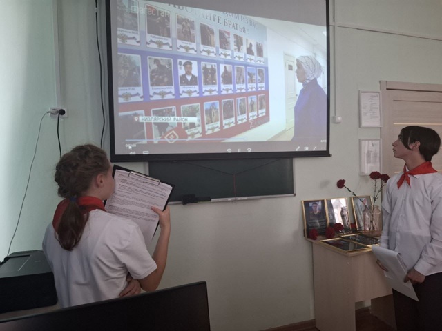 Особое внимание было уделено подвигам наших земляков, находившихся на передовой, а также высоким наградам, которыми отмечен их вклад в общее дело. Были просмотрены видеорепортажи корреспондентов, которые ребята нашли в сети Интернет.