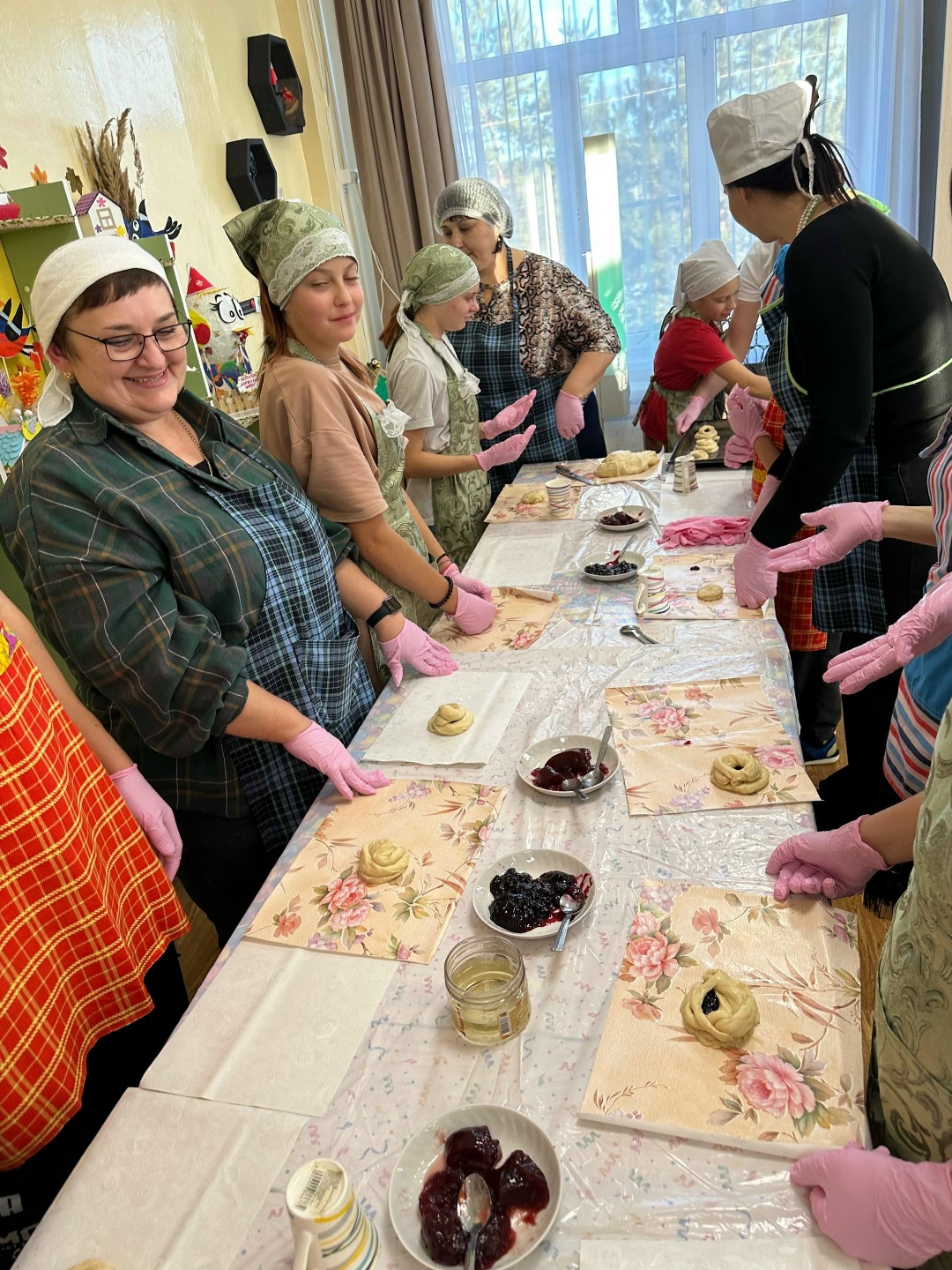 Каждый этап работы сопровождался советами и рассказами опытных участниц Совета женщин, которые делились любимыми рецептами и хитростями кулинарного мастерства. Для воспитанников Центра это стало не только практическим уроком, но и возможностью узнать больше о традициях домашнего хозяйства и значении заботы, воплощённой в простой, но такой тёплой форме — в свежеиспечённом пироге.