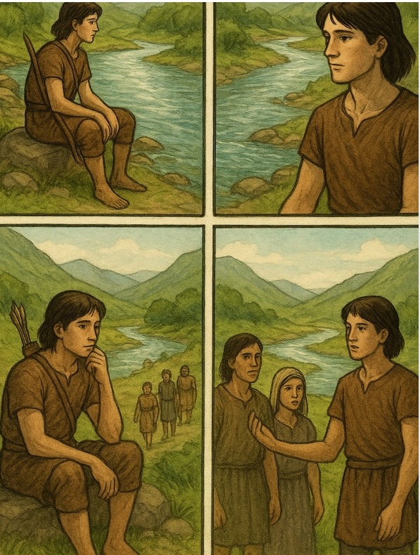 Каждый день его ноги сами приводили его к воде — словно река звала его к себе. Арунай садился на камень и часами смотрел на серебристые струи, слушал их шёпот и чувствовал, что в этом мире есть только он и красавица-река 💙