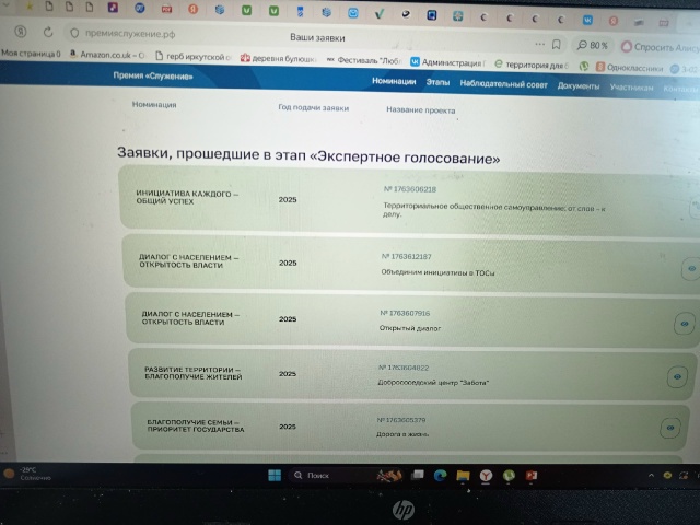 Премия "Служение" инициирована нашим Президентом, и мы от нашего сельского поселения подавали около 25 заявок. В итоге 12 прошли в этап "Экспертное голосование".