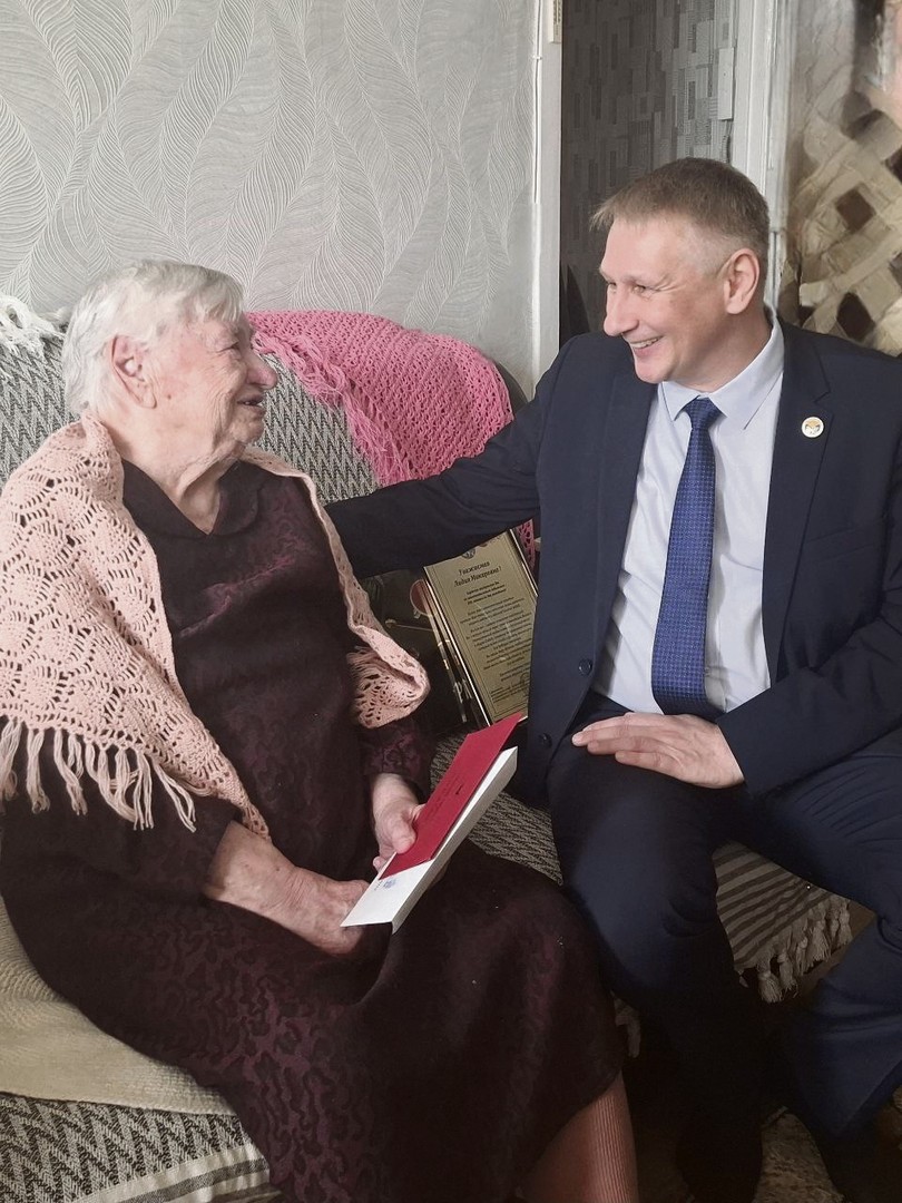 С 100-летним юбилеем иркутянку Лидию Макаровну Матюхину одним из первых поздравил Антон Медко, заместитель мэра города — председатель комитета по управлению Свердловским округом. «Лидии Макаровне желаю крепчайшего здоровья, заботы близких и родных людей», — сказал Антон Медко, вручая цветы и подарки имениннице. Глава округа также принес поздравления от мэра Иркутска Руслана Болотова и губернатора региона Игоря Кобзева